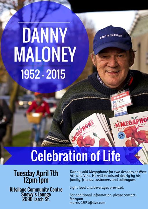 Many of us mourn the passing of Danny Maloney, in Vancouver who handed out megaphone magazine in Vancouver, BC at Wholefoods in Kitsilano. Many of […]